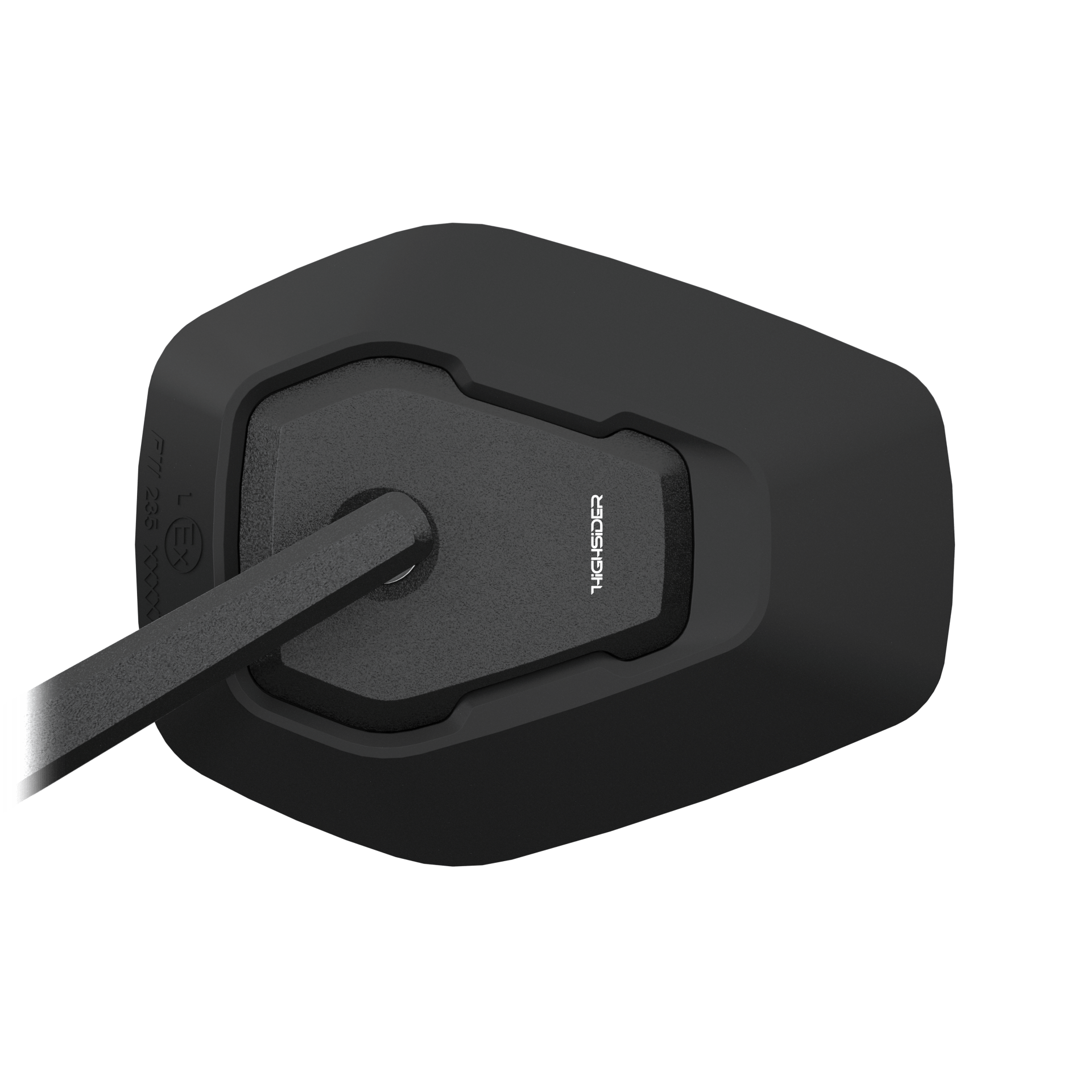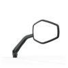 HIGHSIDER ESAGANO-RS spejlet præsenterer et futuristisk design, der er inspireret af de moderne motorcyklers æstetik, med hævede og flade trapezoider, som giver spejlet et markant og dynamisk udseende. Spejlets hovedbase er fremstillet af høj kvalitet plast, som omslutter det karakteristiske indlæg, der er CNC-bearbejdet i aluminium. Dette symboliserer ESAGANO-produktfamilien designlinje og skaber en unik genkendelsesværdi med de hævede og flade afsmalnede geometriske former.