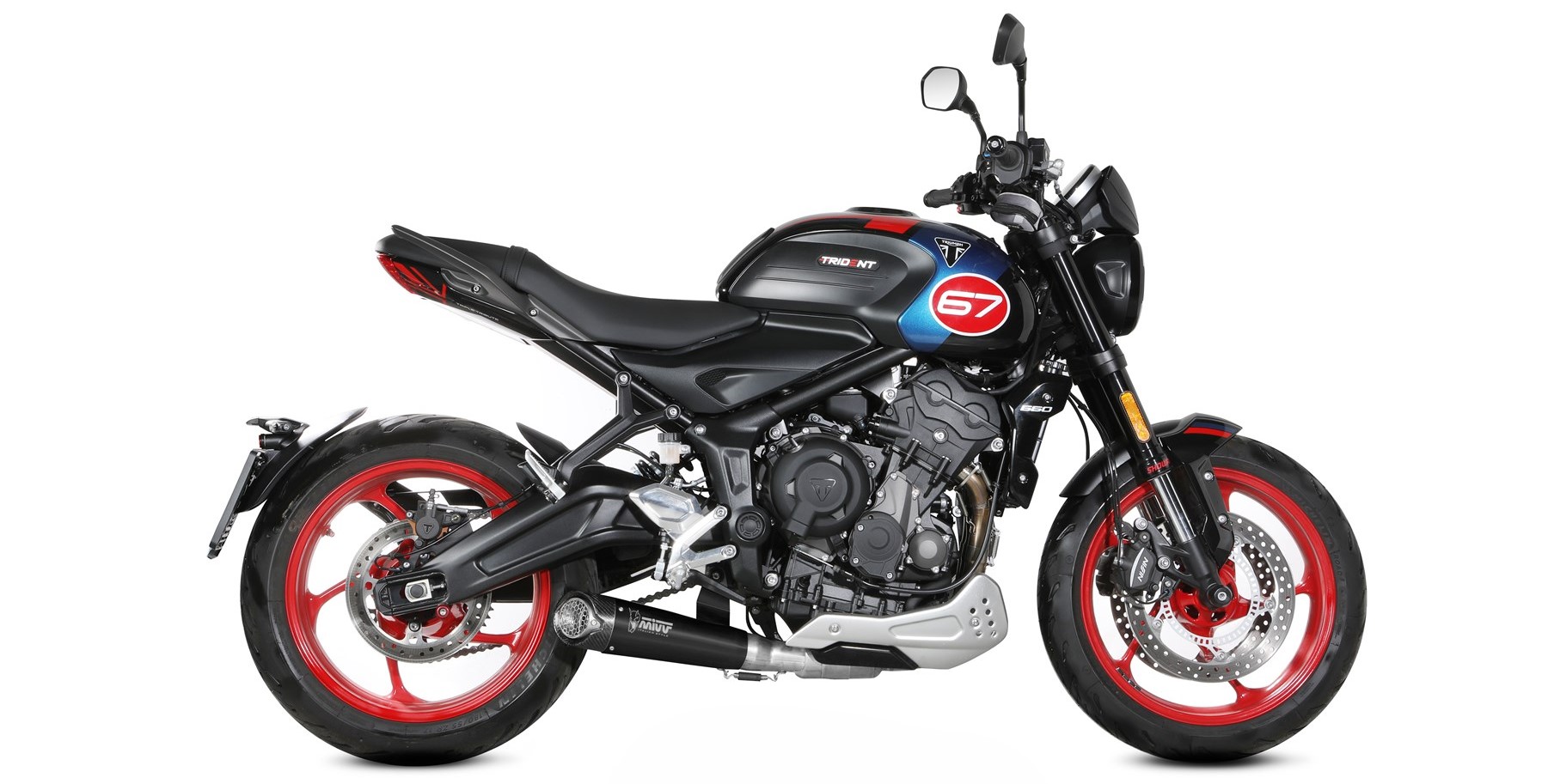 Mivv SC5 Black er udviklet specifikt til Triumph Trident 660 (2025→) og trækker direkte tråde til Mivvs erfaring fra MotoGP og WorldSBK. Med sit korte, kompakte design og markante lyd leverer SC5 en kompromisløs opgradering, der fremhæver den trecylindrede motors karakter og giver Trident et mere aggressivt og racing-inspireret udtryk.