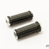 Fodhvilerne er CNC-bearbejdet i aluminium, hvilket giver lav vægt, høj styrke og lang holdbarhed. Den strukturerede overflade er udformet med fokus på pålideligt greb og komfort og sikrer stabil fodkontakt ved acceleration, opbremsning og svingkørsel. Konstruktionen er kompakt og integreres naturligt med motorcyklens eksisterende fodhvilersystem.