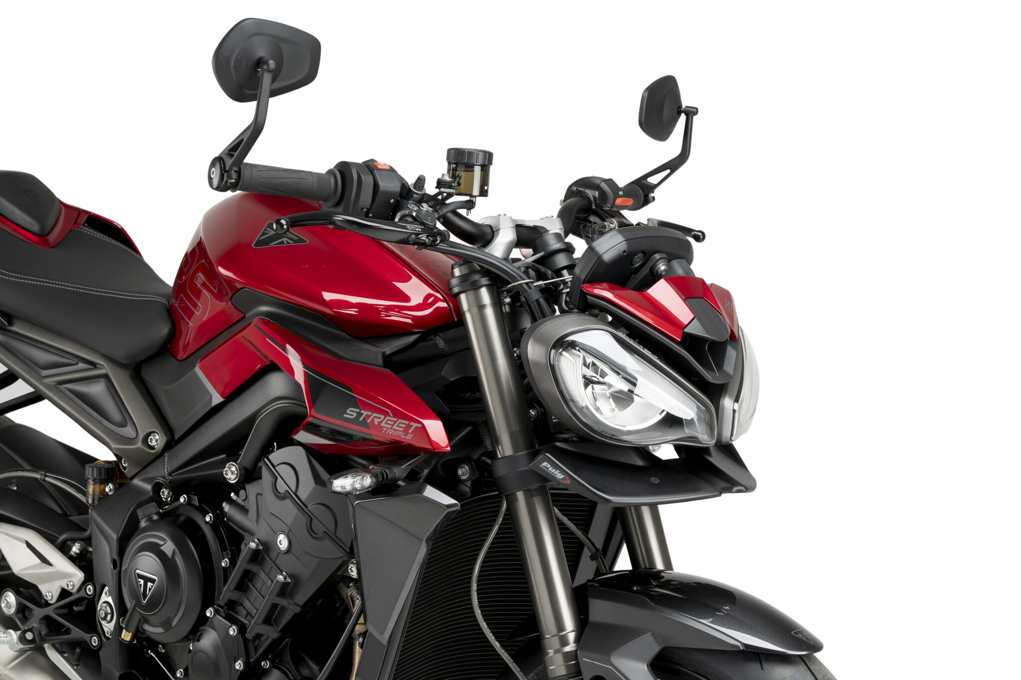 Puig Front Spoilers giver motorcyklen et mere markant, aggressivt og street-orienteret udtryk, samtidig med at aerodynamikken forbedres under kørsel. Spoilerne er udviklet til at optimere luftstrømmen omkring fronten og bidrager til øget stabilitet, især ved acceleration og højere hastigheder.