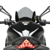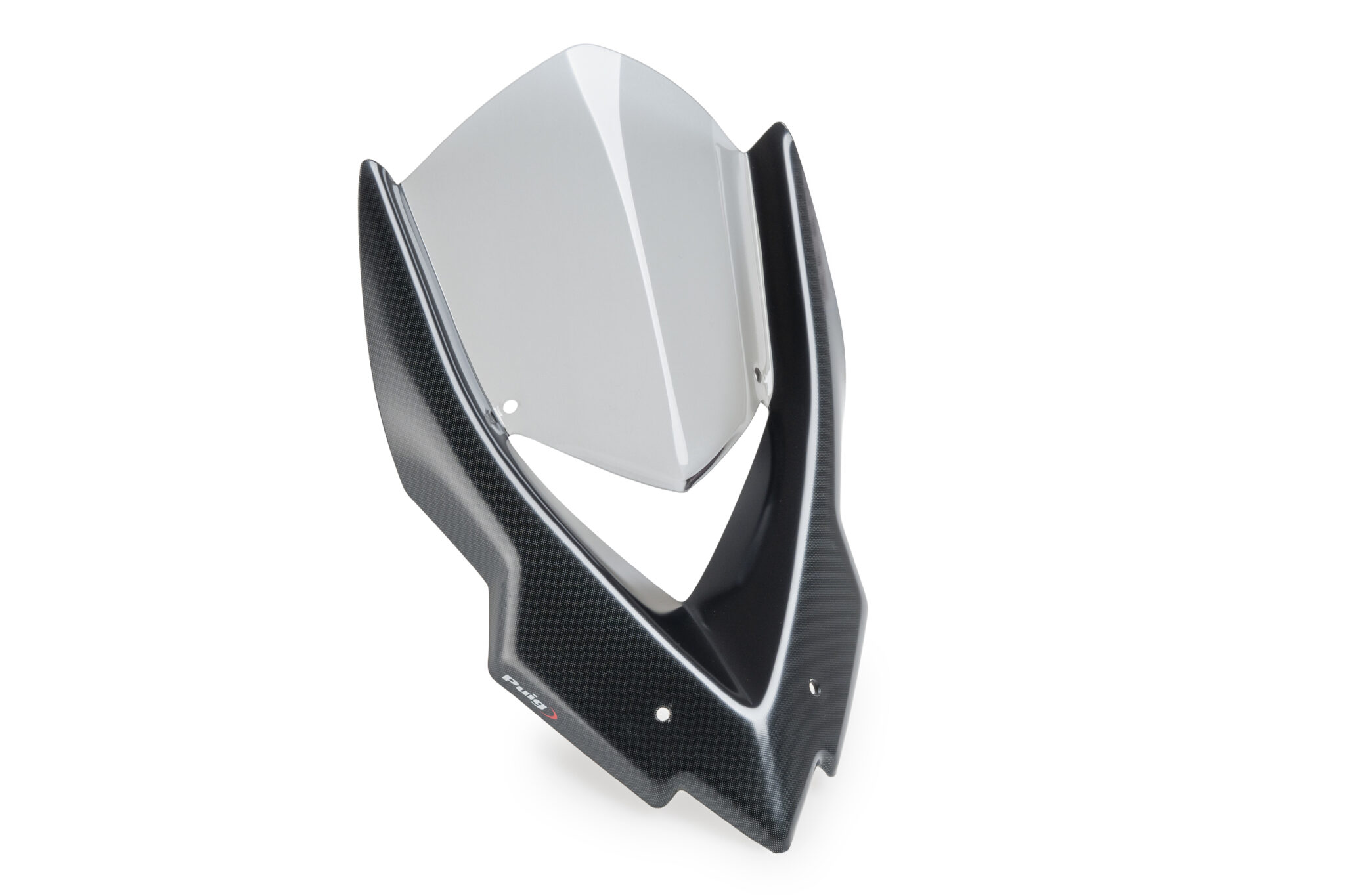 Skærmen er fremstillet i modstandsdygtig akrylplast med afrundede kanter for øget sikkerhed og stabilitet under kørsel. Den er modelspecifikt udviklet og monteres på motorcyklens originale fastgørelsespunkter med medfølgende monteringsdele.