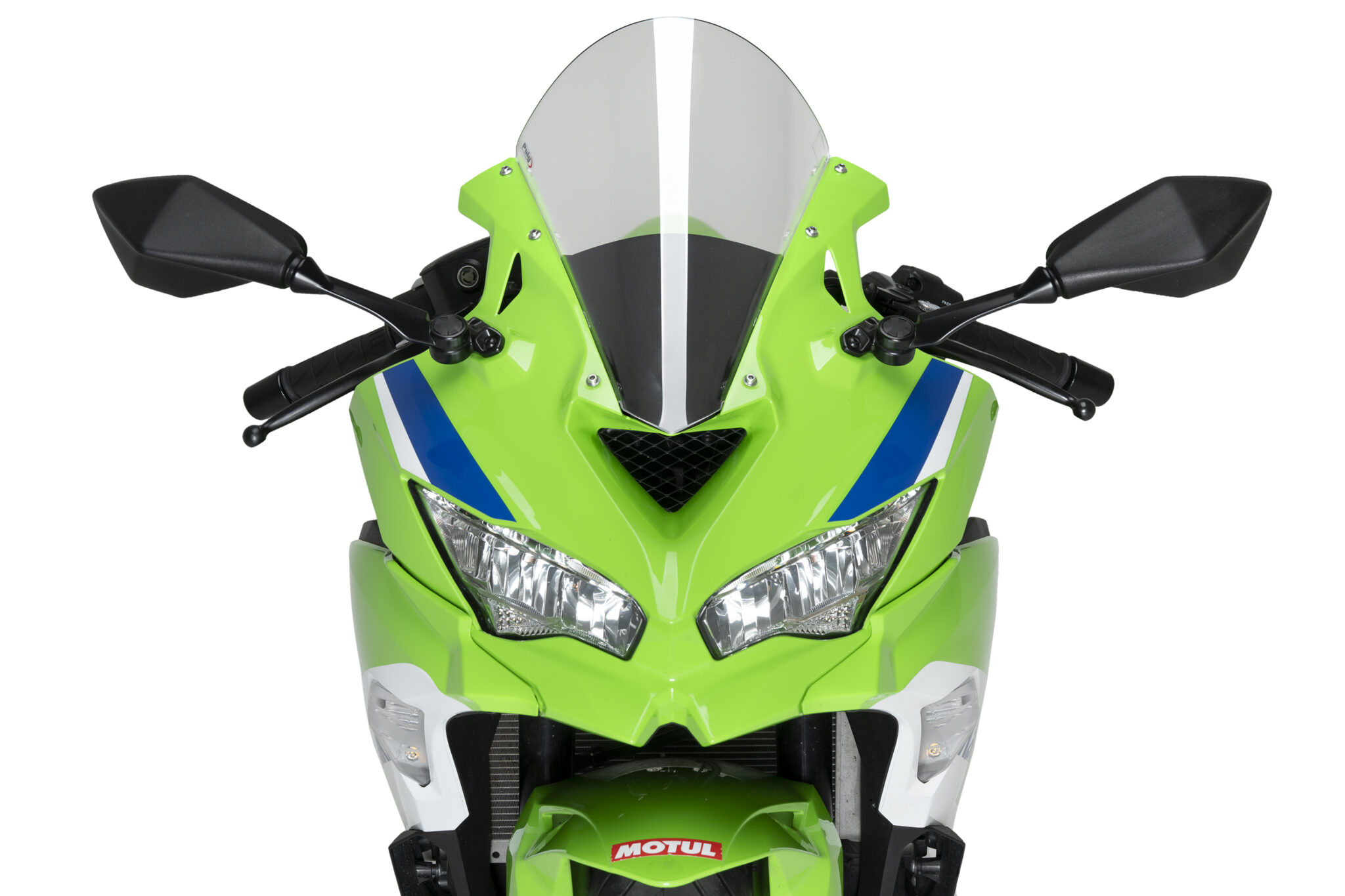 Puig R-Racer Screen er udviklet til at forbedre aerodynamikken og give motorcyklen et mere race-inspireret udtryk. Skærmen måler 363 x 285 mm og er 80 mm højere end originalen, hvilket giver bedre afledning af vinden fra hjelm og skuldre og øger komforten ved høj fart.