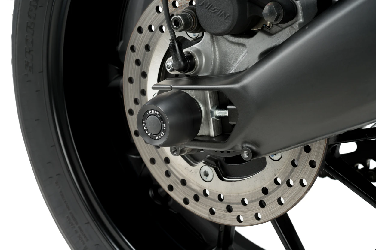 Puig baghjulsbeskytter er udviklet til at beskytte svingarm og baghjulsaksel mod skader ved væltning eller lette styrt. Konstruktionen reducerer direkte kontakt med underlaget og bidrager til at begrænse slid og påvirkning af vitale komponenter.