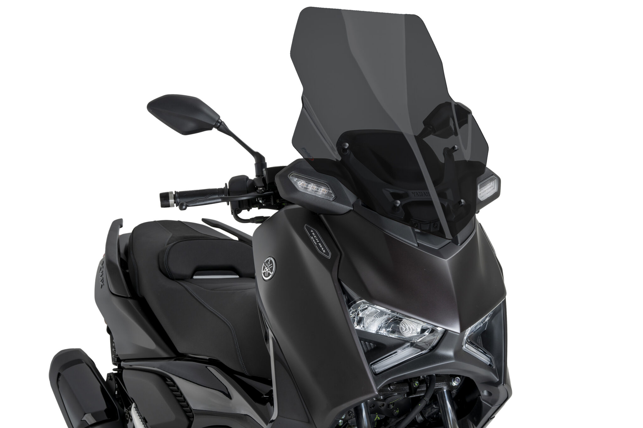 Puig V-Tech Line Touring vindskærm er designet til at forbedre beskyttelsen mod vind og turbulens under kørsel i udfordrende vejr. Den karakteristiske vinklede form leder effektivt luften væk fra føreren og ud mod siderne, hvilket mindsker luftmodstand og turbulens.