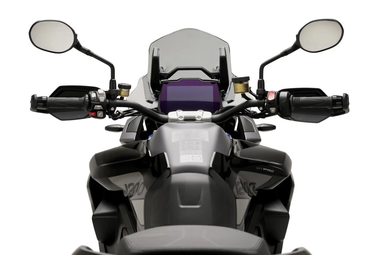 Puig Sport Screen giver aerodynamisk vindbeskyttelse og understøtter motorcyklens sporty udtryk ved by- og korte ture. Den kompakte udformning mindsker vindpåvirkningen uden at forringe førerens udsyn og bevarer komforten under kørsel.
