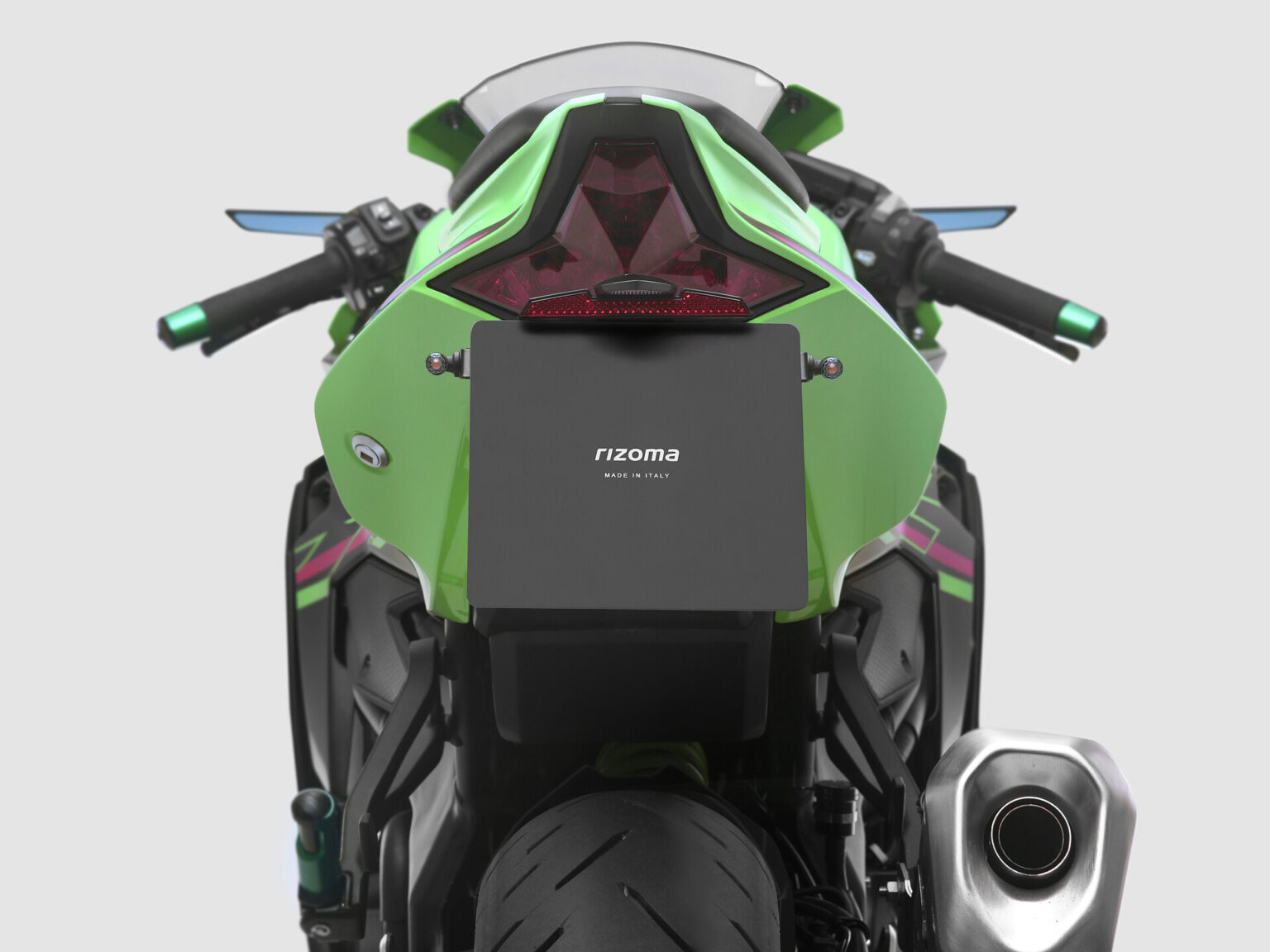 Denne Rizoma Fox nummerpladeholder er udviklet specifikt til Kawasaki Ninja ZX-4R og giver motorcyklens bagende et langt mere kompakt, strømlinet og sportsligt udtryk. Den erstatter den originale, voluminøse løsning og tilfører både lavere vægt og et mere racerinspireret look.