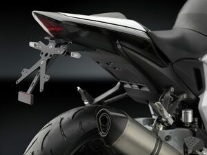 Denne Fox nummerpladeholder fra Rizoma er udviklet specifikt til Honda CB1000R og giver motorcyklens bagende et skarpere, lettere og mere moderne udtryk. Den erstatter den originale, voluminøse holder og skaber en mere kompakt og stilren afslutning, der matcher CB1000R’s karakteristisk Neo Sports Café møder streetfighter-design.