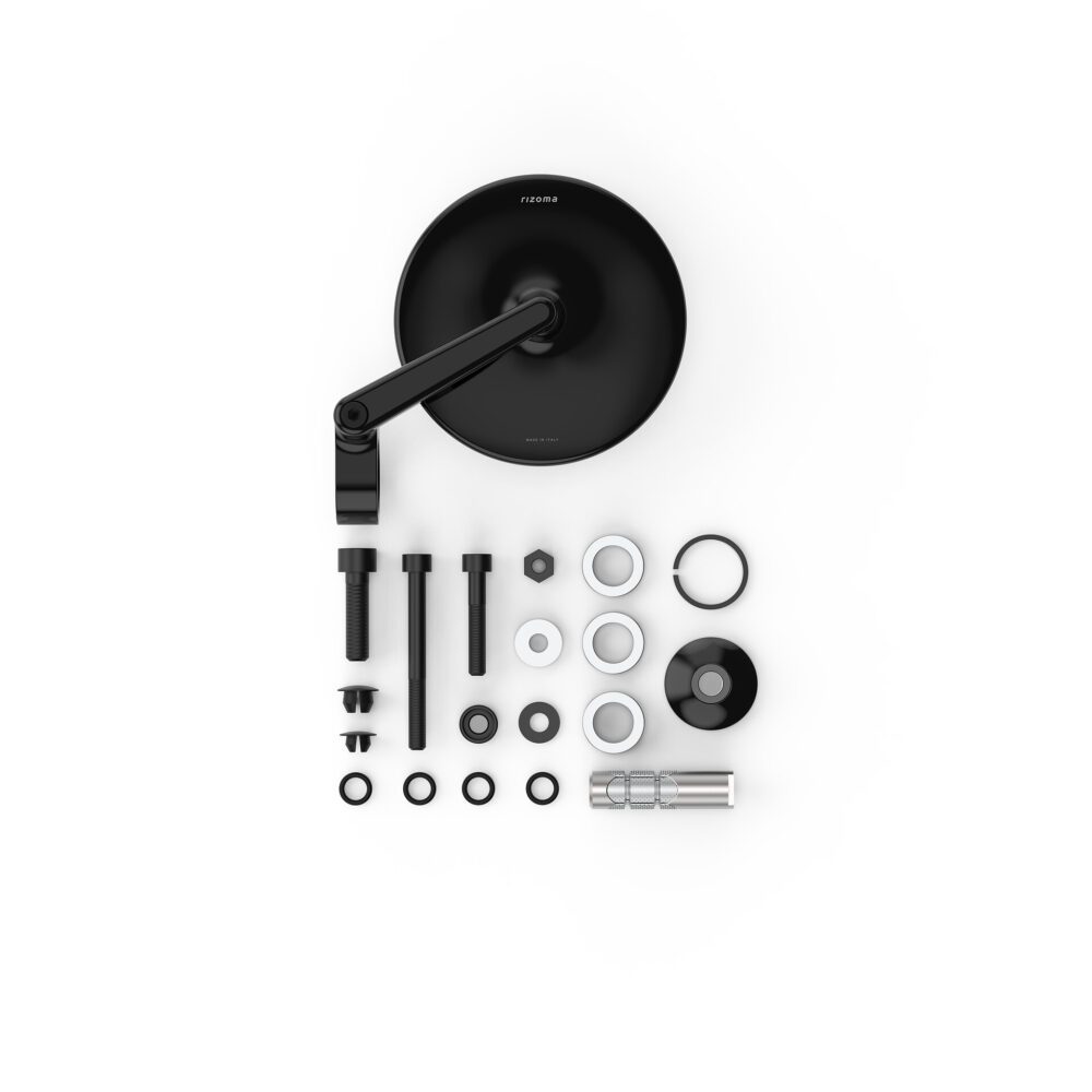Rizoma O-Edge styrende spejl med en diameter på 56 mm.